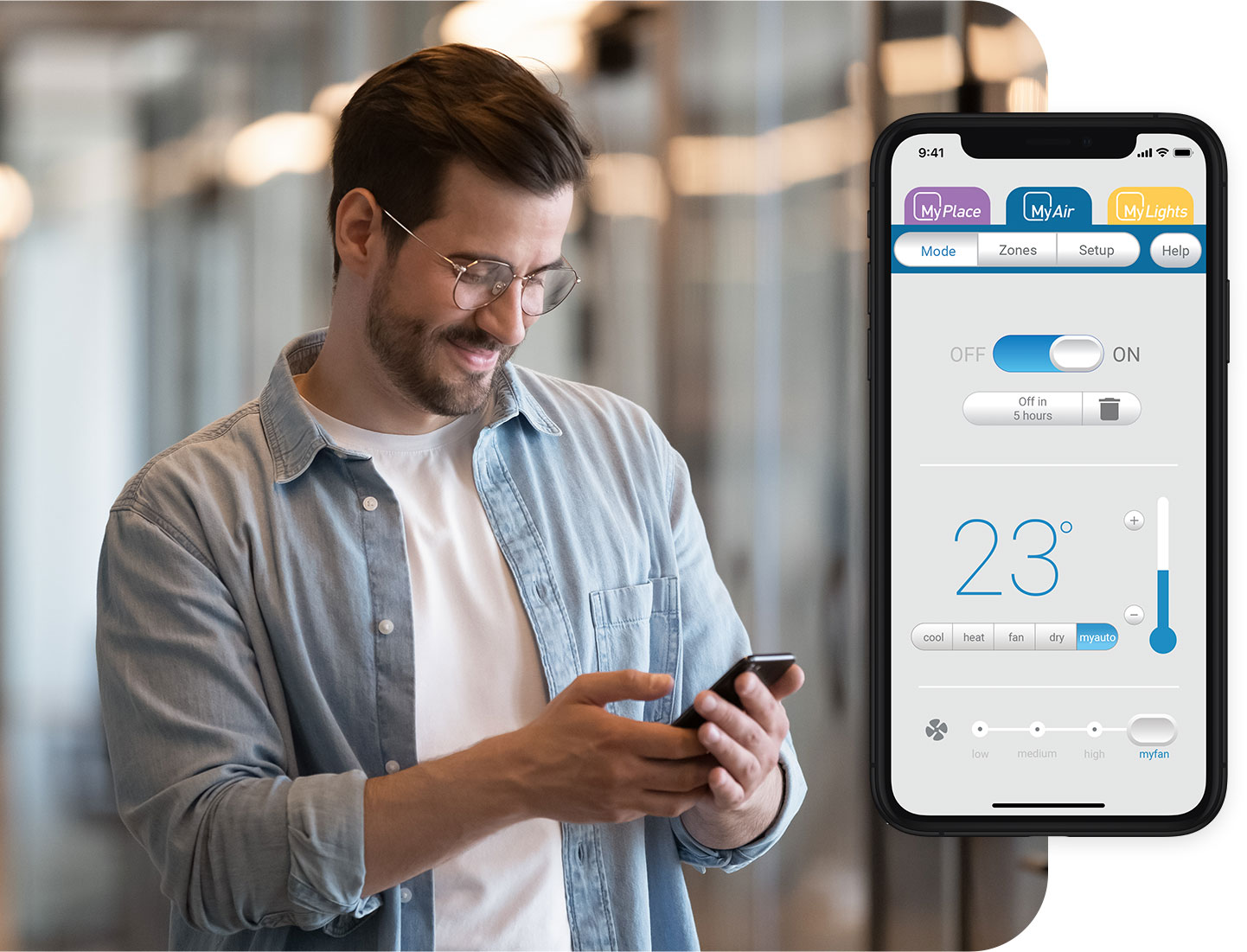As the leading aircon specialists throughout South-East Queensland, we’ve formed partnerships with leading aircon suppliers & technology partners such as MyAir – a smart control system for your aircon system and lighting. MyAir is an Advantage Air product that allows you to control the settings for your ducted air conditioning remotely via a smartphone or tablet app. Providing you with absolute control over the comfort of your home, MyAir can be fitted in both new and existing homes. Give our friendly team a call to see ifthe MyAir Smart Climate Control system is right for you.